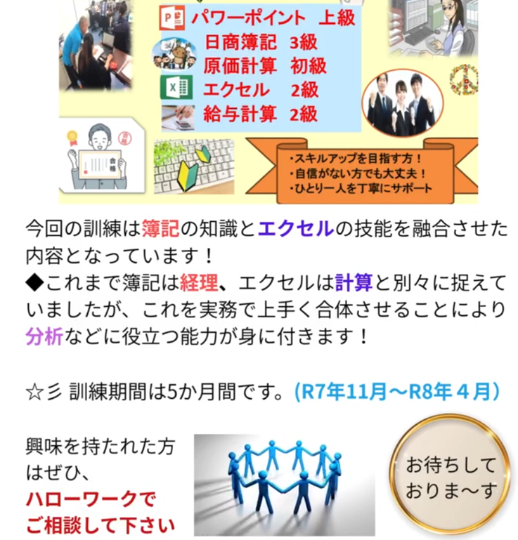 🌸令和7年度 求職者支援訓練 11月開講 受講生募集のご案内🌸